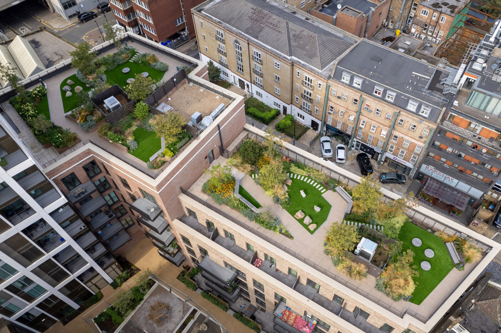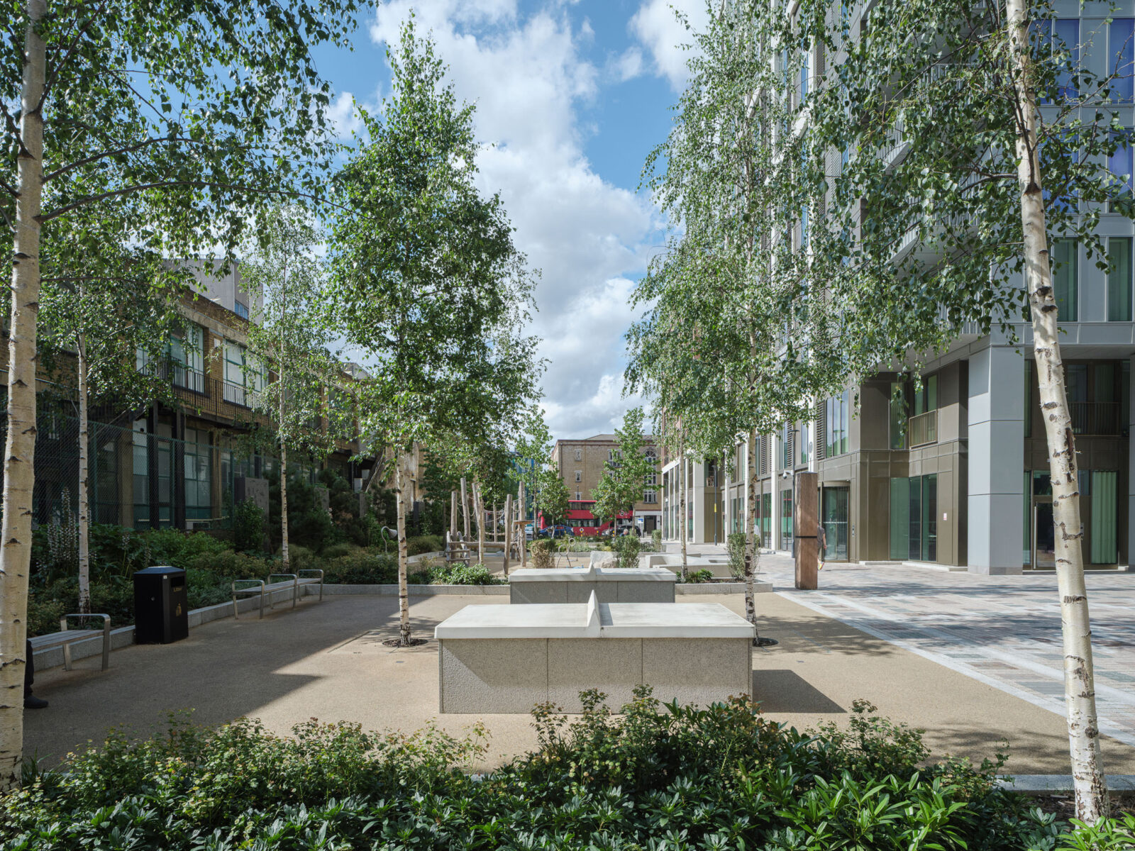 The scheme is set across three blocks, with one-third of the site dedicated to a new public realm. The buildings vary from terraces of townhouses along the cobbled Raven Row, courtyard blocks of up to eight storeys and two towers stepping up to 25 storeys. A central space within The Silk District is home to many new amenities, providing facilities and entertainment on people’s doorsteps. Alongside city workers and entrepreneurs, the area attracts the fresh energy of artists and small business owners, while retaining the vibrant community of one of London’s most historic neighbourhoods.